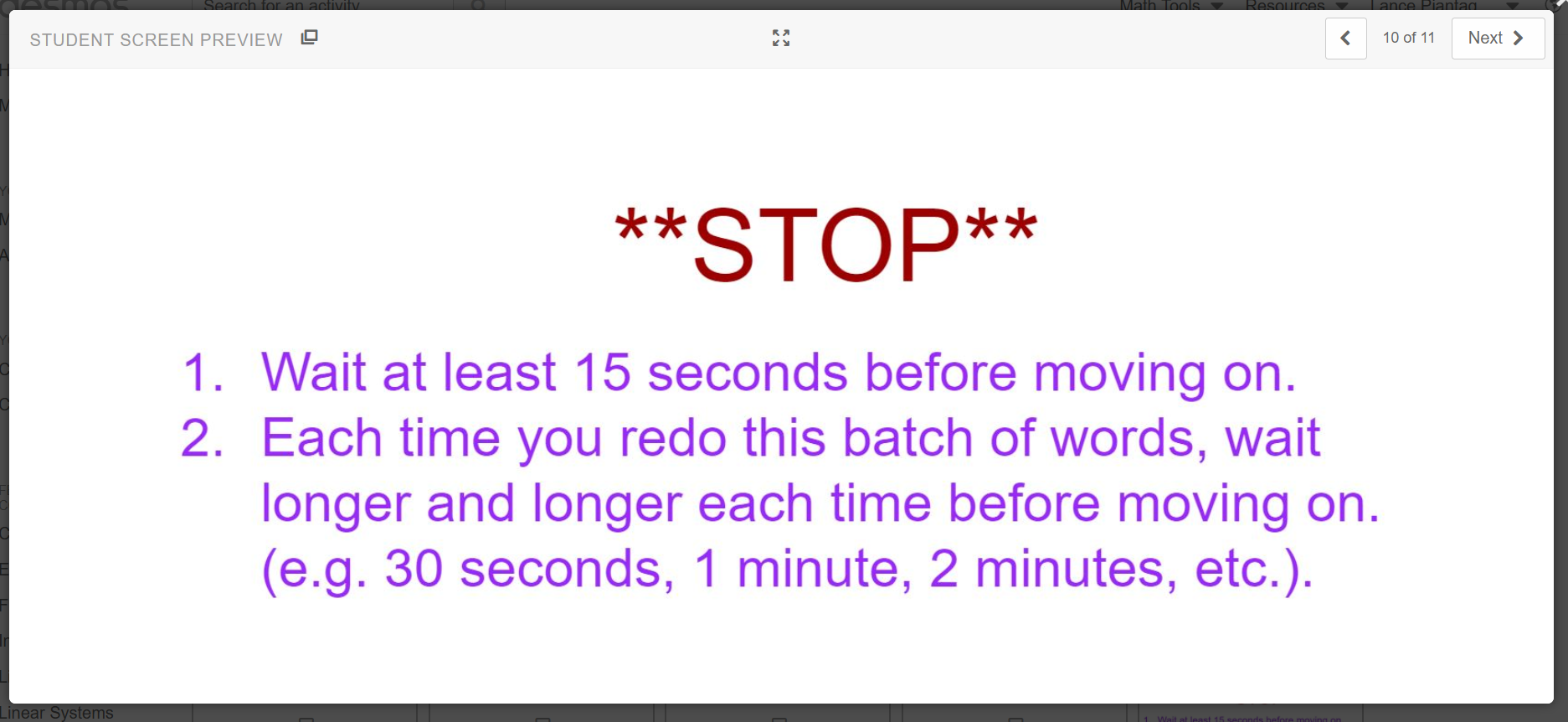 Instruct students to skip words they easily recall, spending more time with words they don’t know.