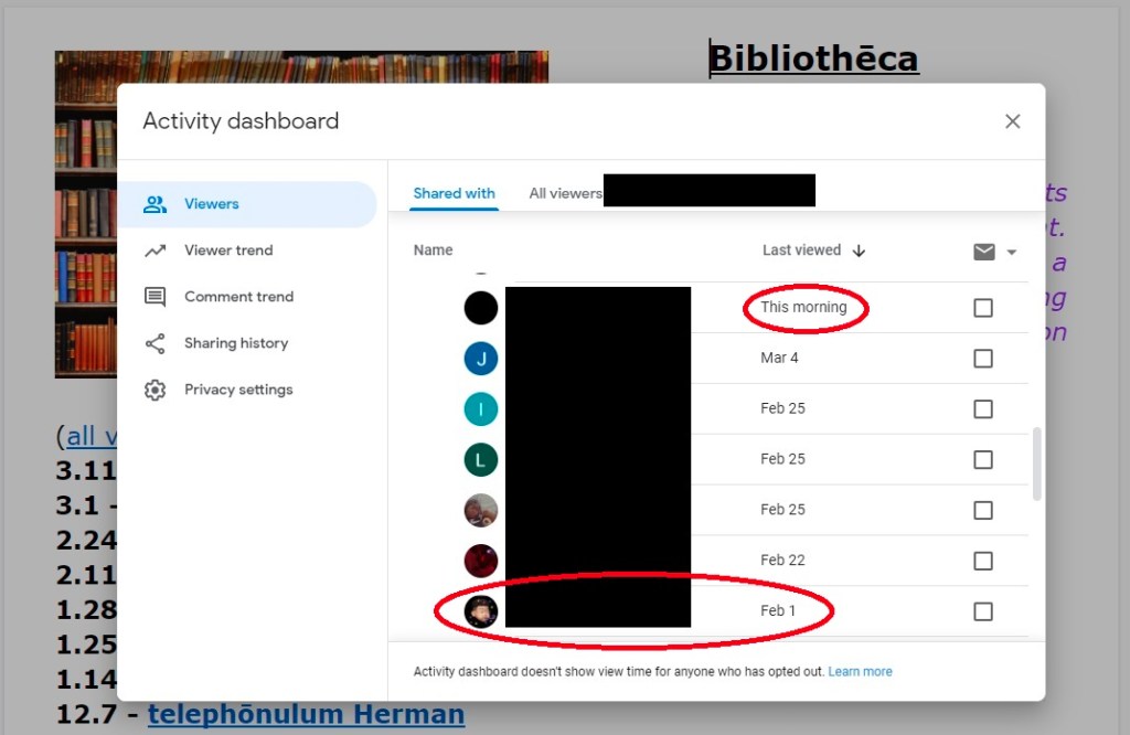 By looking at the viewers, you can see the last time a student logged in. Again, we can’t say this is evidence they ARE reading—they could be logging in each day for 10 seconds—but we CAN see who definitely isn’t. As you can see below, one student hadn’t been reading for over two months. In fact, there were students who hadn’t even viewed the class library since November—yikes!