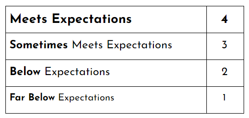 For those who don’t know, these scores go into a 0% grading category used as a container to hold evidence of learning like portfolio. Scores of 1 & 2 indicate the student needs support. Scores of 3 & 4 mean they know what they’re fine. I’m not even gonna add anything more detailed to that rubric. In fact, I think it’s more than adequate to ask a student to think how well they were listening for a week or so, and for them to come up with a number out of 4. That’s good enough. Besides, grades aren’t the point. The point is having fun, learning, or creating together in class (i.e. the three communicative purposes of language in a classroom). We want to remove grades as much as possible from the equation, albeit they’re necessary, so this system accomplishes that. So, students will end up with about five of these scores and five reading scores each grading term. Then, they’ll use the same input expectations rubric I’ve been using this whole time to self-assess the quarter grade. This rubric includes all processes/rules—still a daily expectation. After all, we can’t have students talking over each other, or off in their own world watching Netflix saying “well my focus is asking, so…” Therefore, even if a student chooses to focus on asking when Latin is unclear for their bi-weekly self-assessment, they’re still expected to look, and listen during class.