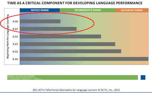 So, I’m asking that you contribute to this unofficial record of national results so that teachers can compare their program to a) other similarly-structured Latin programs, as well as b) differently-structured ones. For example, the national trend—right now—is that just as many students in the first two years of Latin are concentrated at Novice Low/Mid as they are Intermediate Mid/High. Oddly enough, there’s a general lack of Novice High, regardless of experience or teaching approach! Of course, that could just be because teachers whose students do score Novice High haven’t filled out the form…yet. Another trend is that the majority of Latin 3-4 students score Intermediate Mid. Within that, however, there’s also a trend that Grammar & Analysis programs produce students who don’t seem to improve with more experience. They get to Intermediate Mid after the second year, but hang out for another two years. Comprehension-based programs, on the other hand, appear to produce students who improve quite a bit with experience, with scores from these Comprehension-based programs representing the majority of those who reach Intermediate High and Advanced Low. Beyond these pedagogical comparisons, all Latin programs could compare their ALIRA results to ACTFL’s expectations for language learners, too, to see if the majority of their students are out of Novice range sometime in years 3-4, for example.