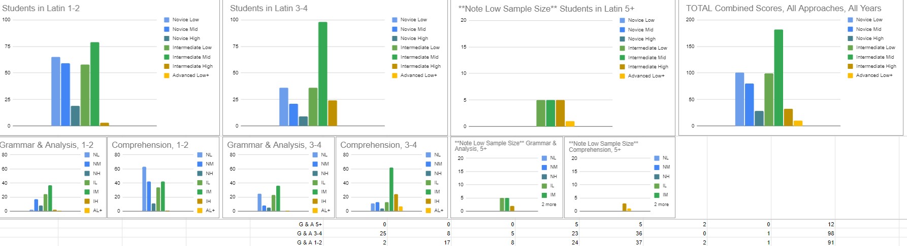 In short, the charts will contradict the claim that reading non-Classical Latin leaves students unprepared for reading Classical Latin. They will suggest that reading non-Classical Latin texts, such as those rife with Cognates & Latinglish via class texts and novellas, is of no disadvantage. They will also suggest that reading Classical texts is of no advantage. That’s all I’m prepared to share, for now.