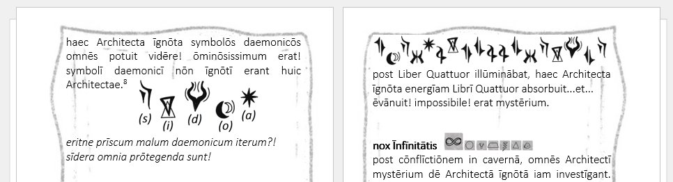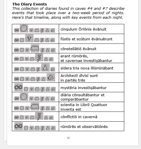 There’s also a secret message conveyed through mysterious symbols towards the end of the book. The Appendices has Latin letter equivalents: