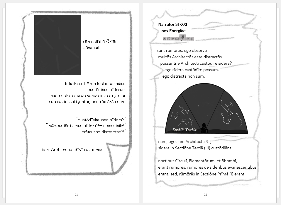 diāria sīderum is a personal favorite. I think this one is my best, honestly, though it appears to be an unlikely choice for the Classicist Latin teacher. Then again, they’re not the ones reading the book. Students are! The sci-fi/fantasy narrative has a bit of a “who dunnit?” feel to it, with students seeking to figure out what made the book’s ancient culture disappear. It’s in three parts using half cognates. The first part has 30 cognates and 30 other words (i.e., 60 total), and the other two parts add 20 and 20 words to that, respectively (i.e., 100 total). It was written so that my Latin 1 class could read a 1000-word long intro to “The Architects” in Part 1 to get a sense of what was going on just before their disappearance. Then, during independent reading, anyone interested could finish Parts 2 and 3 that provide more clues as to what happened.
