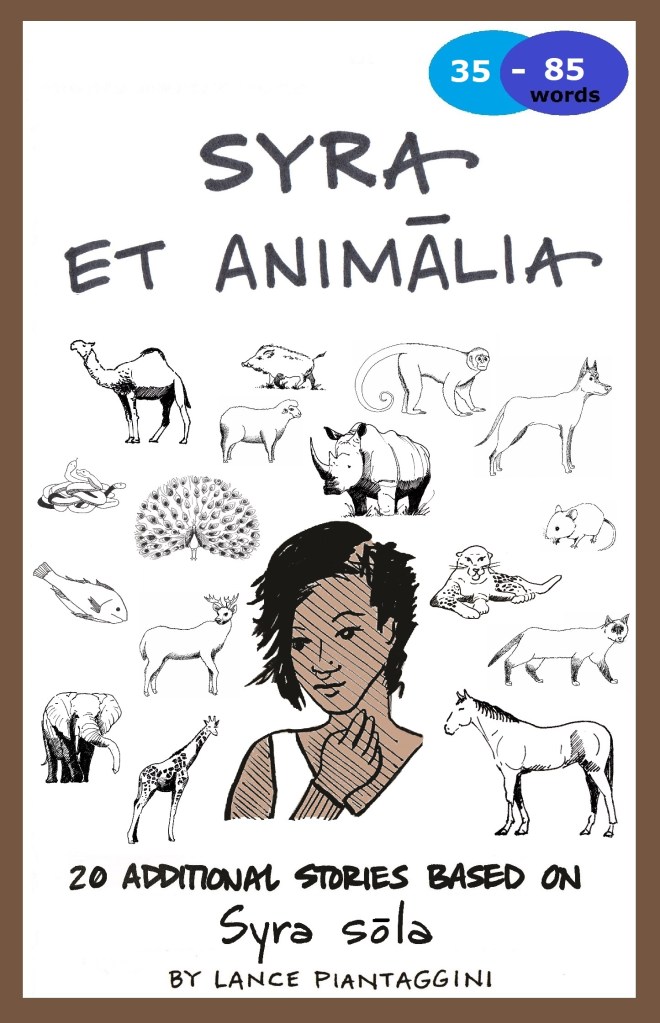 Rūfus lutulentus, Rūfus et arma ātra, Agrippīna: māter fortis, and now Syra sōla all have companion texts, either as collections of additional stories via Expanded Readings (i.e. Rūfus et Lūcia: līberī lutulentī, Syra et animālia, and Rūfus et gladiātōrēs), or a parallel novella via Choose-Your-Own-Level Readings (i.e. Līvia: māter ēloquens). These books have a colored border, and more than one unique word count button to show the range throughout (depending on the level one reads), which corresponds the other Pisoverse books (i.e. light blue <50 words; dark blue 50-100 words; purple 100+ words). This word count button is intended to inform teachers of relative reading level, and help learners choose a book during Free Voluntary Reading (FVR). Thus, I refer to all these companion texts as “FVR readers.”